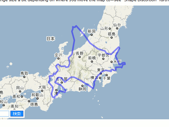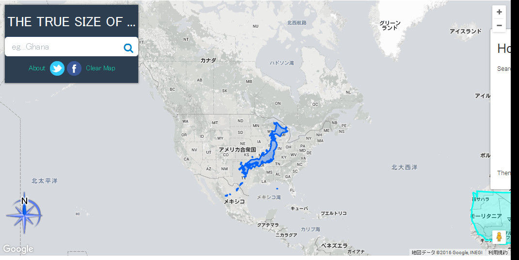 地図は上と下では拡大して書かれる